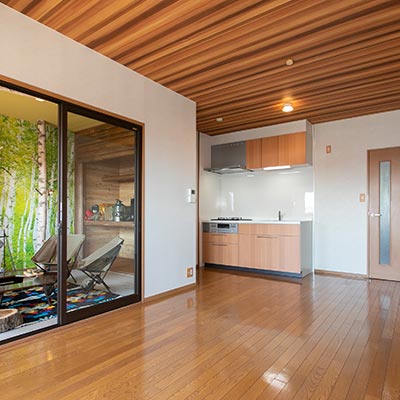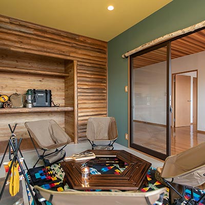 「おうちでキャンプROOM」はそんなキャンプがしたくてたまらない人に向けて提案する部屋。一部屋を土間仕様に改装し、まるでキャンプ場のような空間に仕上げています。