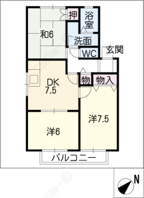 敷 金0.5ヶ月 / 礼 金1.5ヶ月間取り 2LDK / 57.93入居日 2026年2月中旬