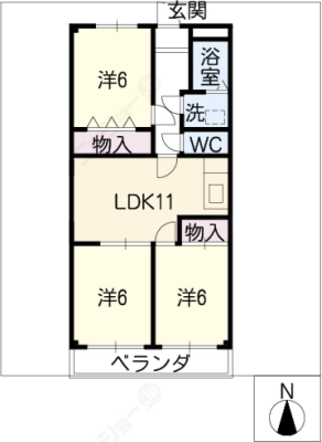 敷 金1ヶ月 / 礼 金1ヶ月間取り 3LDK / 65.88入居日 相 談