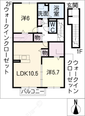 敷 金0.5ヶ月 / 礼 金1.5ヶ月間取り 2LDK / 60.03入居日 2026年5月上旬