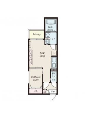 敷 金8.8万 / 礼 金-----間取り 1LDK / 40.06㎡入居日 即 可