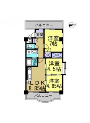 敷 金3ヶ月 / 敷 引3ヶ月間取り 3LDK / 66.23㎡入居日 相 談