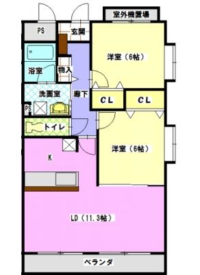 保証金2.00ヶ月 / 償 却5割間取り 2LDK / 59.64㎡入居日 2026年6月15日頃
