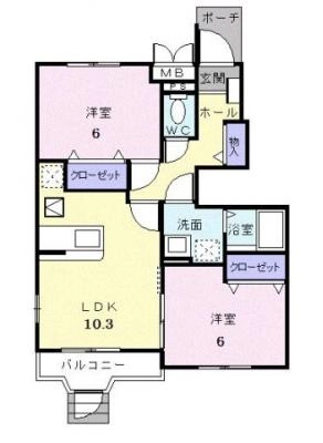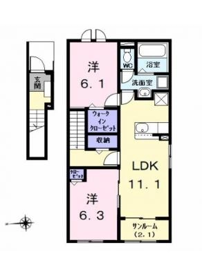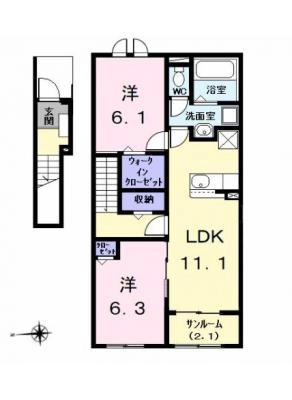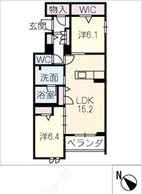 敷 金2.00ヶ月 / 礼 金-----間取り 2LDK / 56.07㎡入居 日 即 可