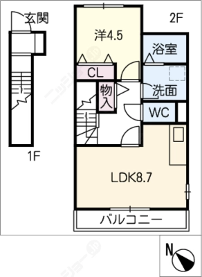 敷 金1.5ヶ月 / 礼 金1ヶ月間取り 1K / 30.08