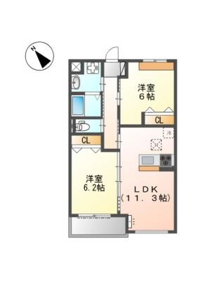 敷 金12万 / 償 却10割間取り 2LDK / 65.48入居日 即 可