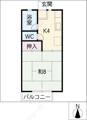 敷 金2ヶ月 / 敷 引2ヶ月間取り 1K / 20.00㎡入居日 即 可