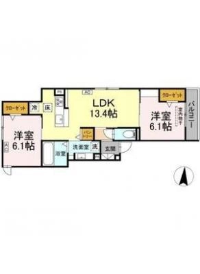 保証金2ヶ月 / 礼 金2万間取り 1K / 21.39㎡入居日 2026年3月上旬