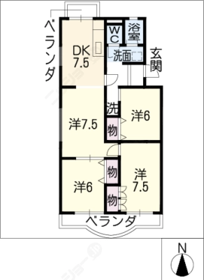 保証金2ヶ月 / 償 却10割間取り 4DK / 75.32入居日 即 可