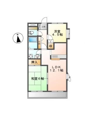 保証金1.00ヶ月 / 償 却1.00ヶ月間取り 2DK / 35.29入居日 相 談