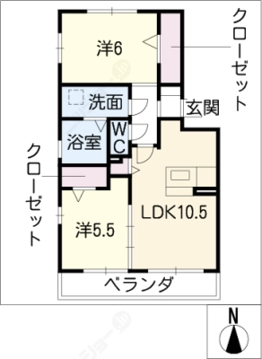 敷 金1ヶ月 / 償 却10割間取り 2LDK / 55.26㎡入居日 即 可