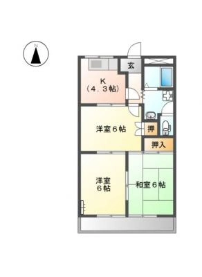 敷 金2ヶ月 / 礼 金-----間取り 3K / 44.60入居日 2026年1月下旬