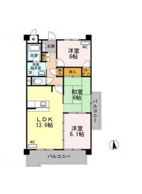 保証金1ヶ月 / 償 却10割間取り 3LDK / 60.49入居日 即 可