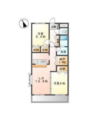 敷 金1.00ヶ月 / 礼 金-----間取り 2LDK / 57.75㎡入居日 即 可