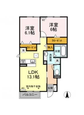 敷 金1.00ヶ月 / 礼 金2.00ヶ月間取り 2LDK / 59.43入居日 2026年3月25日頃