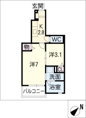敷 金2.00ヶ月 / 償 却2.00ヶ月間取り 1K / 30.53入居日 即 可