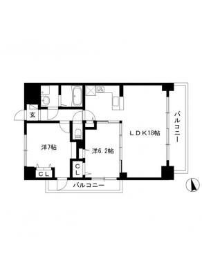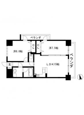 敷 金2ヶ月 / 償 却10割間取り 2LDK / 64.00入居日 即 可