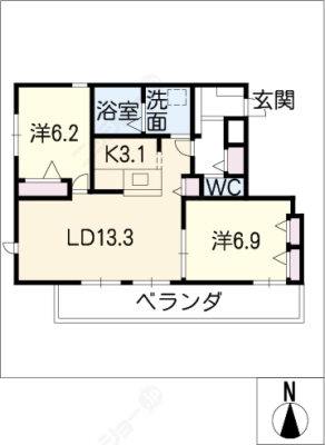 敷 金1ヶ月 / 礼 金1ヶ月間取り 2LDK / 63.38入居日 2026年2月下旬
