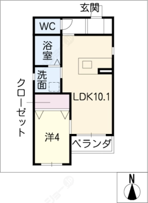 敷 金1ヶ月 / 償 却10割間取り 1LDK / 42.66入居日 即 可
