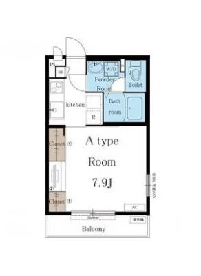 敷 金2ヶ月 / 礼 金2ヶ月間取り 1DK / 32.81㎡入居日 即 可