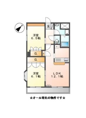 敷 金1.00ヶ月 / 礼 金-----間取り 2LDK / 57.33㎡入居日 即 可