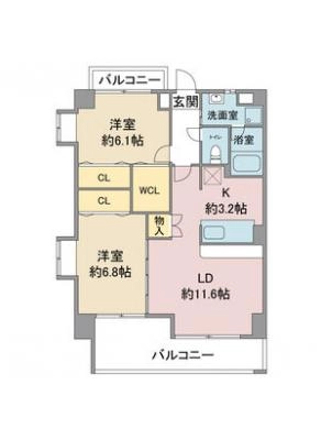 敷 金2.00ヶ月 / 礼 金1.00ヶ月間取り 2LDK / 64.05㎡入居日 2026年4月30日頃