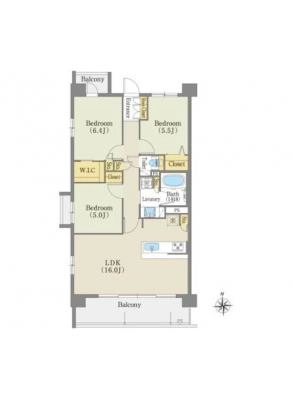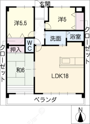 敷 金2ヶ月 / 敷 引2ヶ月間取り 3LDK / 59.48入居日 2026年2月下旬