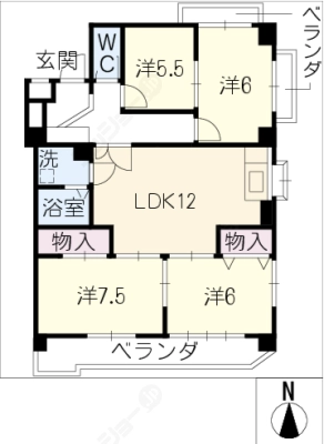 敷 金3.00ヶ月 / 償 却3.00ヶ月間取り 4LDK / 75.77入居日 即 可