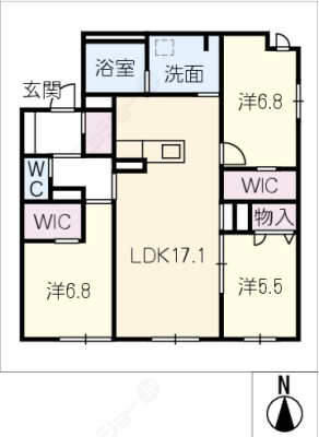 敷 金2.00ヶ月 / 礼 金1.00ヶ月間取り 3LDK / 72.45入居日 即 可