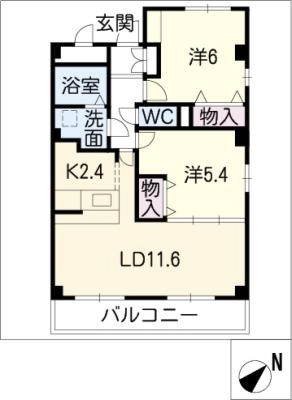 保証金2ヶ月 / 償 却10割間取り 2LDK / 59.40入居日 即 可