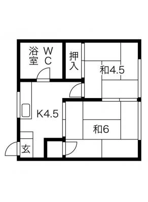 保証金2ヶ月 / 償 却10割間取り 2DK / 45.00㎡入居日 即 可