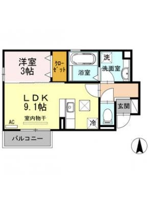 保証金1.00ヶ月 / 償 却10割間取り 1LDK / 33.84㎡入居日 相 談
