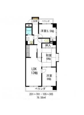 敷 金1.00ヶ月 / 礼 金-----間取り 3LDK / 76.95入居日 即 可