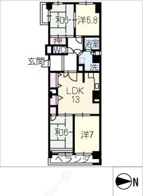 敷 金1.00ヶ月 / 礼 金1.00ヶ月間取り 2LDK / 66.27㎡入居日 即 可