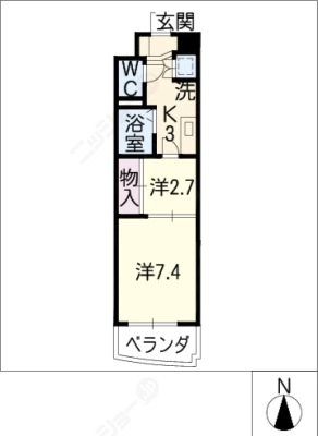 敷 金1.00ヶ月 / 礼 金2.00ヶ月間取り 1K / 26.73㎡入居日 即 可