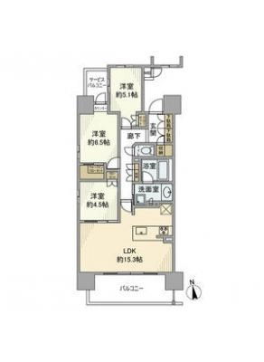 敷 金2.00ヶ月 / 礼 金1.00ヶ月間取り 3LDK / 73.23㎡入居日 2026年8月15日頃