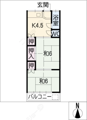 保証金2ヶ月 / 償 却10割間取り 2K / 34.65入居日 即 可