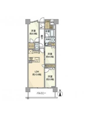 保証金1ヶ月 / 礼 金1ヶ月間取り 2LDK / 63.60㎡入居日 即 可