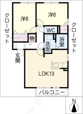 敷 金2ヶ月 / 償 却10割間取り 2LDK / 58.59入居日 即 可