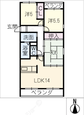 保証金2ヶ月 / 償 却10割間取り 3LDK / 66.48入居日 即 可