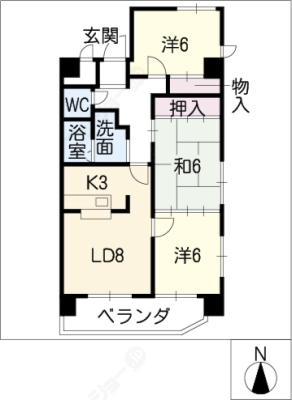 保証金2ヶ月 / 償 却10割間取り 3LDK / 77.35入居日 即 可