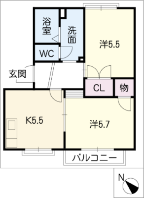 保証金5.5万 / 償 却10割間取り 2K / 58.80㎡入居日 即 可