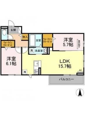 敷 金0.5ヶ月 / 礼 金1.5ヶ月間取り 2LDK / 58.51㎡入居日 2026年3月中旬