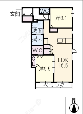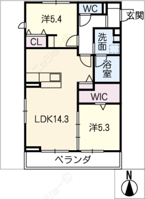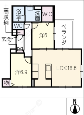 敷 金1ヶ月 / 礼 金1.2ヶ月間取り 2LDK / 59.92㎡入居日 即 可