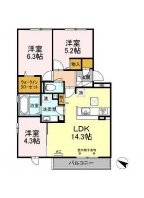 敷 金1.00ヶ月 / 礼 金2.00ヶ月間取り 3LDK / 67.53入居日 2026年4月25日頃