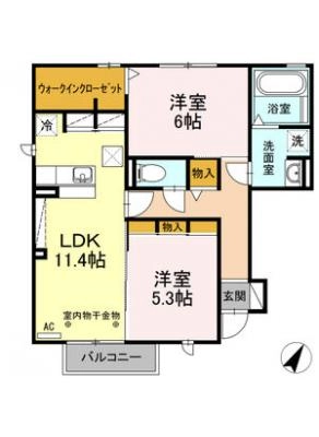 敷 金1.00ヶ月 / 礼 金2.00ヶ月間取り 2LDK / 57.78㎡入居日 即 可