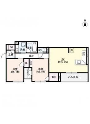 敷 金50,000 / 礼 金250,000間取り 2LDK / 78.73