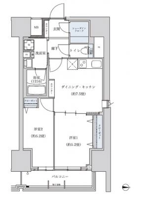 保証金2.00ヶ月 / 償 却1.00ヶ月間取り 2DK / 44.80入居日 即 可