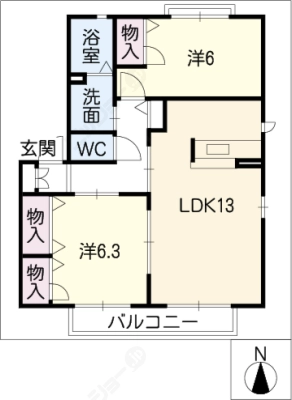 2階6.2万円 / 共益費等 3,300円