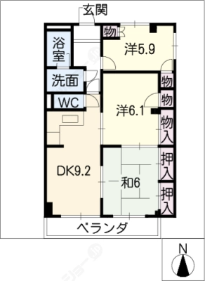 敷 金1ヶ月 / 礼 金1.5ヶ月間取り 3LDK / 92.99入居日 2026年2月下旬
